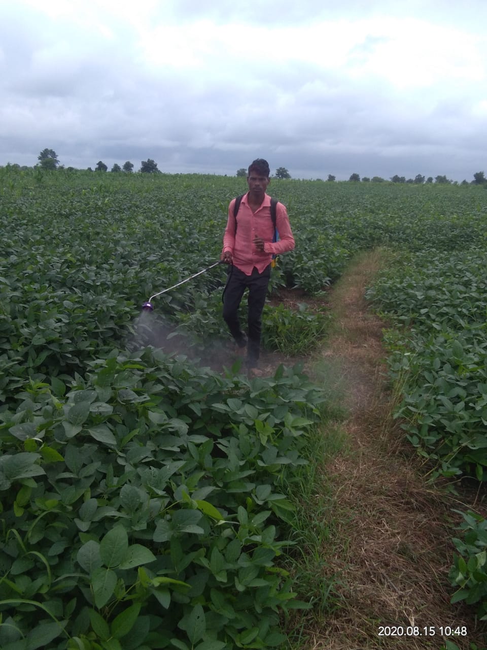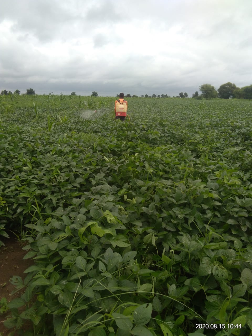 spray of pesticide in soybean crop