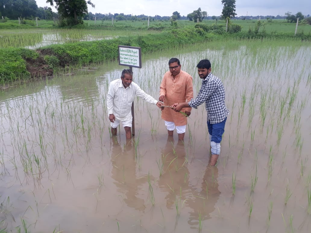 Scientist Visiting farmer field and imparting techniocal inputs